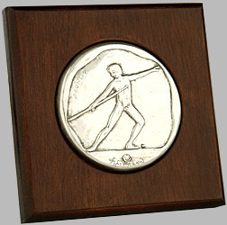 ‘ΠΕΝΤΑΘΛΟ’ ΣΕ ΞΥΛΟ ΠΕΡΙΕΛΑΜΒΑΝΕ ΠΕΝΤΕ ΑΓΩΝΙΣΜΑΤΑ: ΆΛΜΑ, ΔΙΣΚΟ, ΔΡΟΜΟ, ΑΚΟΝΤΙΟ, ΠΑΛΗ. ΈΓΙΝΕ ΓΙΑ ΠΡΩΤΗ ΦΟΡΑ ΤΟ 708 Π.Χ, ΚΑΙ ΑΠΟ ΤΟΤΕ ΜΠΗΚΕ ΣΤΟΥΣ ΟΛΥΜΠΙΑΚΟΥΣ ΑΓΩΝΕΣ. (ΧΑΛΚΙΝΟ ΕΠΑΡΓΥΡΟ ΜΕ ΠΑΤΙΝΑ / ΑΣΗΜΕΝΙΟ ΜΕ ΠΛΑΤΗ ΑΠΟ ΞΥΛΟ)
