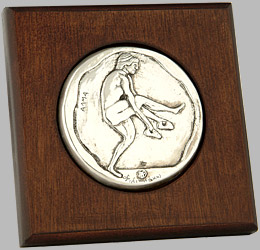 ‘ΠΕΝΤΑΘΛΟ’ ΣΕ ΞΥΛΟ ΠΕΡΙΕΛΑΜΒΑΝΕ ΠΕΝΤΕ ΑΓΩΝΙΣΜΑΤΑ: ΆΛΜΑ, ΔΙΣΚΟ, ΔΡΟΜΟ, ΑΚΟΝΤΙΟ, ΠΑΛΗ. ΈΓΙΝΕ ΓΙΑ ΠΡΩΤΗ ΦΟΡΑ ΤΟ 708 Π.Χ, ΚΑΙ ΑΠΟ ΤΟΤΕ ΜΠΗΚΕ ΣΤΟΥΣ ΟΛΥΜΠΙΑΚΟΥΣ ΑΓΩΝΕΣ. (ΧΑΛΚΙΝΟ ΕΠΑΡΓΥΡΟ ΜΕ ΠΑΤΙΝΑ / ΑΣΗΜΕΝΙΟ ΜΕ ΠΛΑΤΗ ΑΠΟ ΞΥΛΟ)
