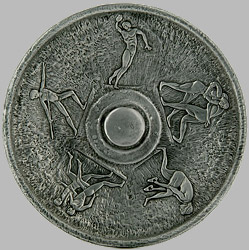 Απεικόνιση των αθλημάτων του Πένταθλου σύνθεση εμπνευσμένη από μπρούτζινη φιάλη που βρέθηκε στη Περαχώρα, Ναός Ήρας (αλουμίνιο / μπρούτζος / επάργυρο)